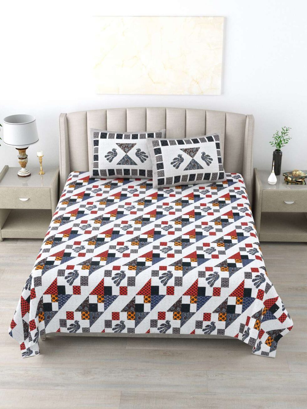 100% Pure Cotton Traditional Printed Bedsheet for Double Bed King Size Bedsheet with 2 Pillow Covers
