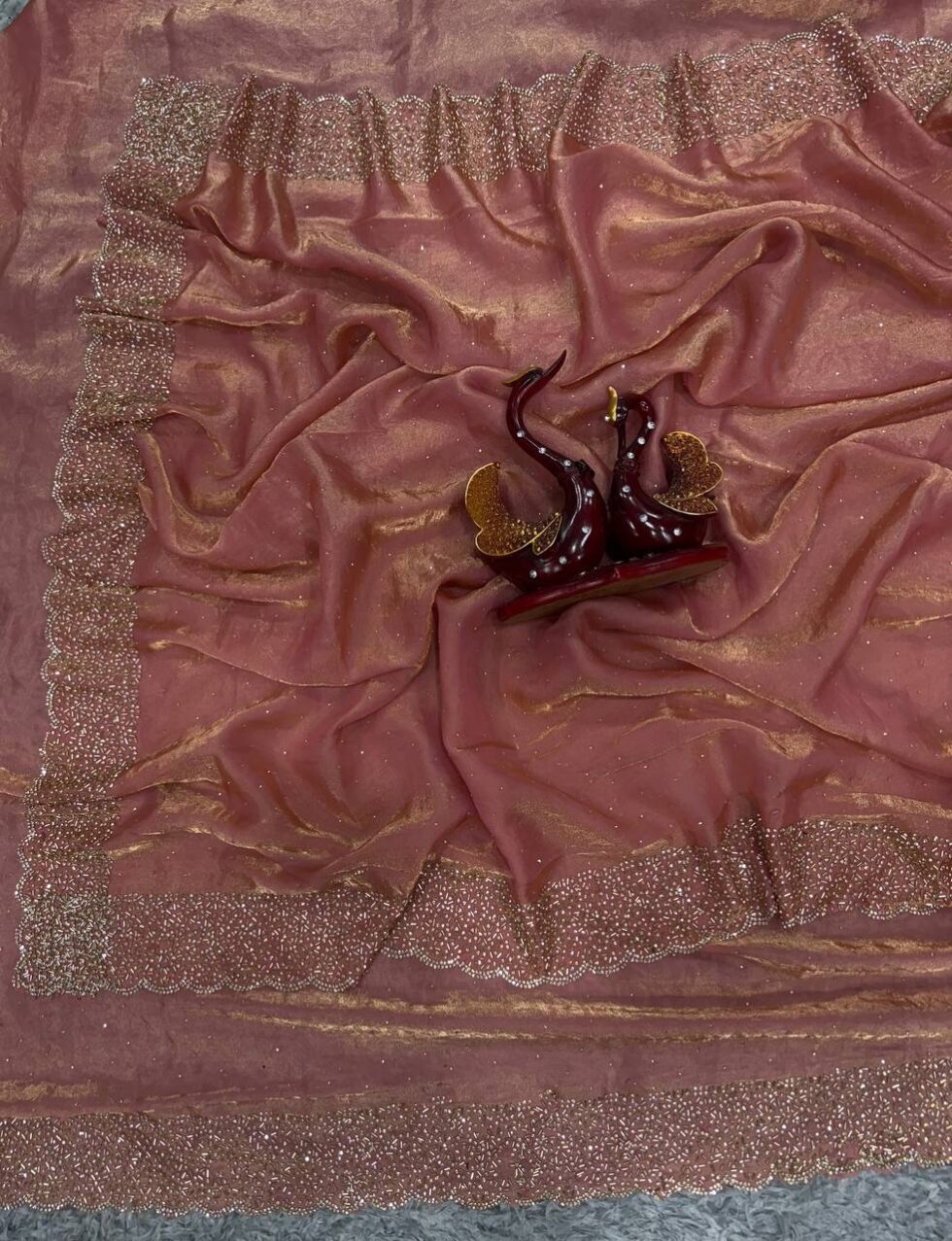 Space Silk Saree with original Jarkhan Diamond work all over. Includes matching diamond-worked blouse. Priced at βΉ6,399.00.